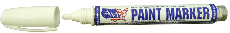 The BRITE-MARK® 40 is a valve-action paint marker that comes with clip cap that screws on for secure closure and fits conveniently in pocket or on a clipboard between uses. The threaded barrel also allows the marker to be screwed into a jig or apparatus. It’s quick drying, oil-based paint withstands indoor and outdoor conditions without fading, chipping or losing its opacity. Made in the USA.