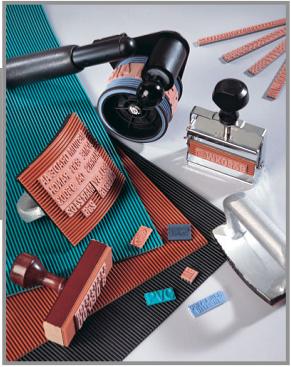 Rubber type molded to a tongue-and-groove base interlocks to fit most rib base coders, Stamps and marking machines. Custom logo dies and individual sorts can also be produced to meet your specific requirements.
