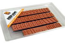 In the RIBtype® system, ribs on the back of the type interlock with ribs on the marking device. This allows for fast changes of text for date coding and lot number changes. Graphics can also be incorporated in the type for product and brand identification.
