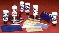 Portable stencil and printer combination can be used anywhere. Available with the standard Pogo printer for flat surfaces or with the Pogo rocker printer for curved surfaces. Ink is distributed evenly through the multi-layered Pogo print pad - no excess waste or mess. Unique stencils made from "tea bag" material and treated with paraffin and special oils for clear, easy, marking. A single stencil can mark up to 100 or more cartons.